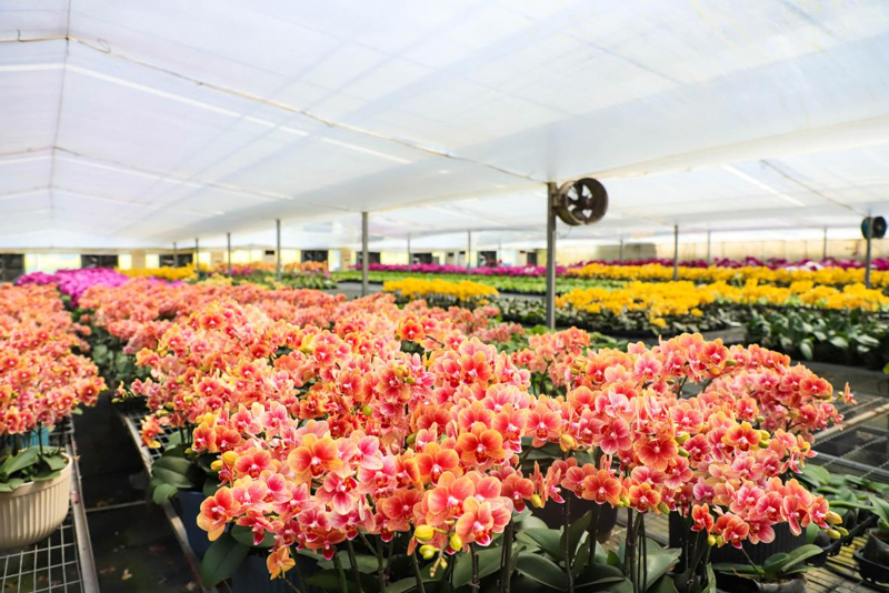 如今,这里已建成长三角最大蝴蝶兰种植基地、浙江领先花烛育种基地,“星空蝴蝶兰”等高端花卉爆款频出。2025年,东安村蝴蝶兰年产量首次突破400万株,全产业链产值突破亿元大关,盆栽园艺年销量超500余万盆。